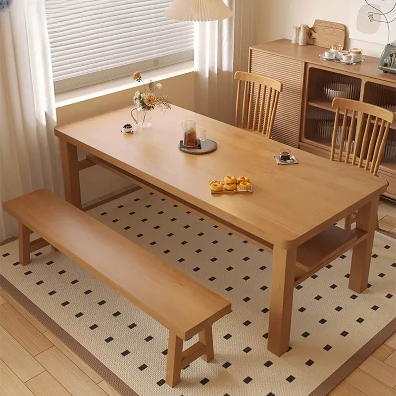 The double-layer design adds functional storage space, ideal for keeping dining essentials within reach while maintaining a clean and organized look. Inspired by vintage Nordic aesthetics, the set’s natural wood grain and sturdy construction create a timeless centerpiece for your living or dining area.